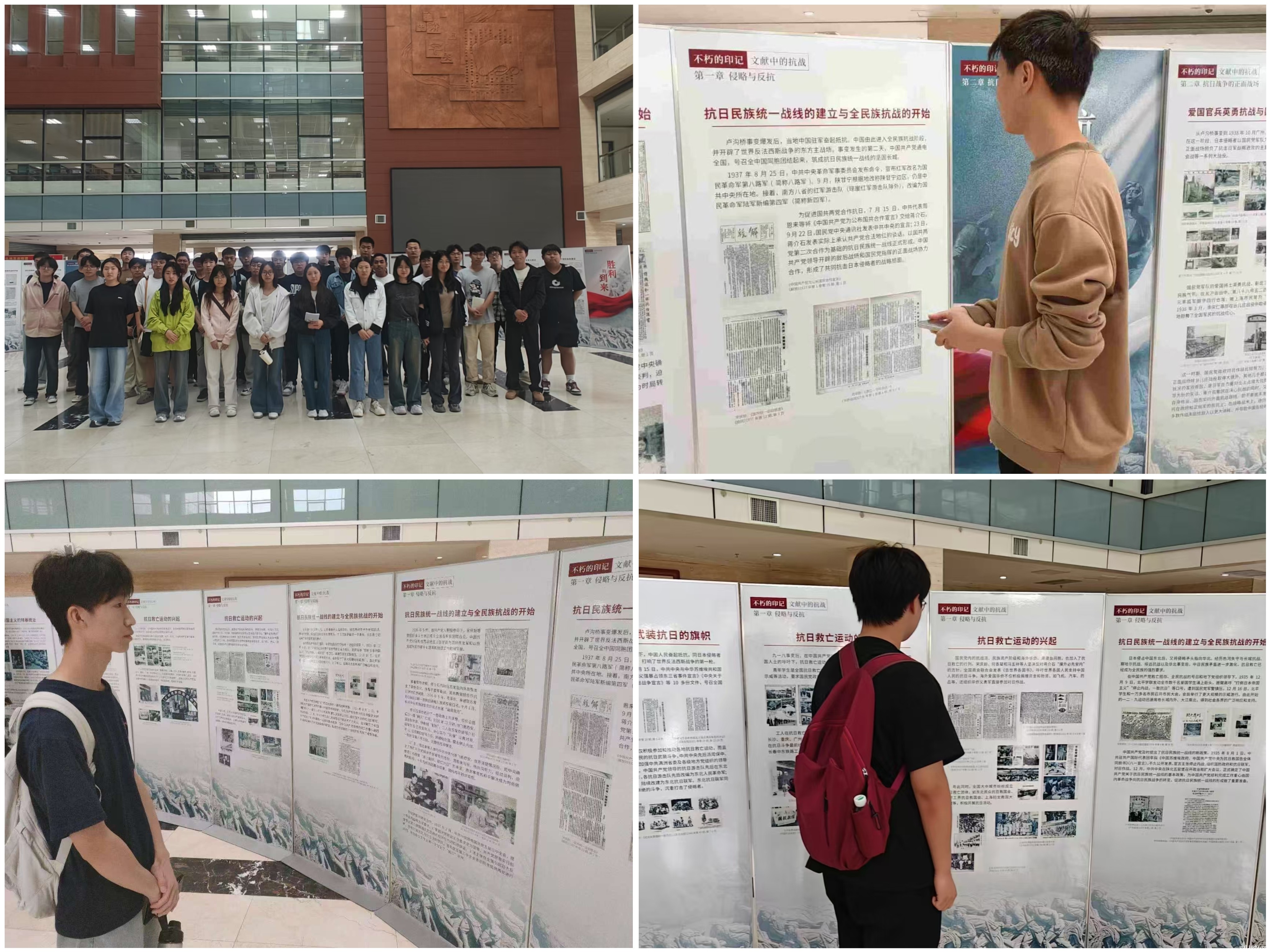 展览以抗战时期的历史文献、书籍、图片为载体,生动展现了中国共产党领导下的全民抗战历程。大家认真观看了近160幅史料文献与珍贵照片,深入了解了全民族抗战的重大事件和英雄事迹,深刻领悟了革命先辈不畏强暴、血战到底的民族气节。2023级学生代表胡坷表示,“这些文献与照片承载着不可磨灭的民族记忆,让我们深刻体会到和平的来之不易,作为新时代青年,更应铭记历史、砥砺前行。”