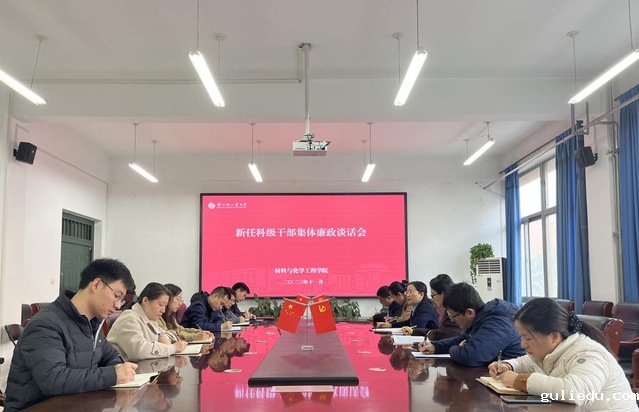 11月15日上午,材料与化学工程学院在化工楼222会议室召开新任科级干部集体廉政谈话会。学院党政负责同志、全体新任科级干部参加会议。会议由学院党委书记常亮主持。