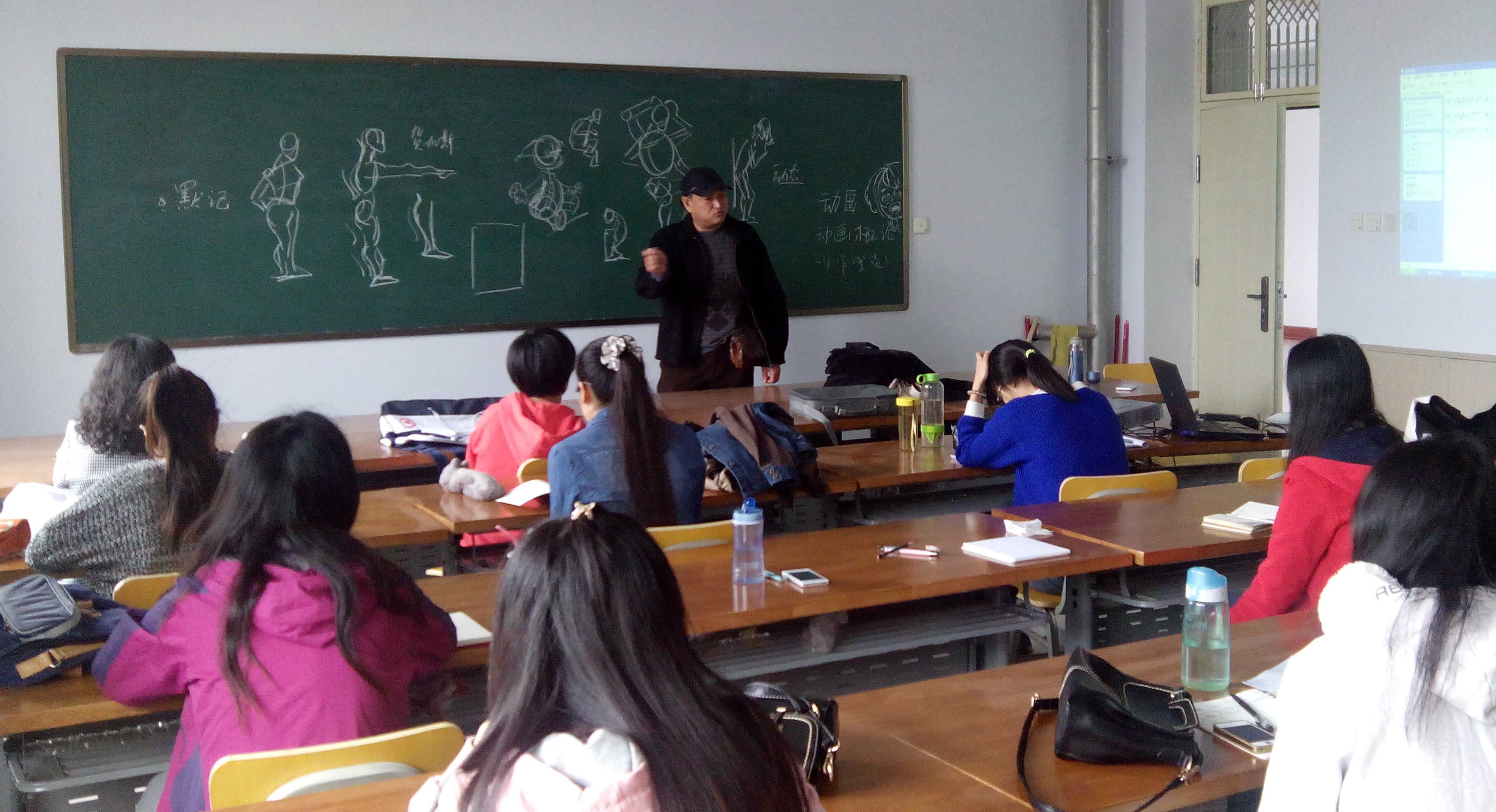 在我校教务处的大力支持下,艺术设计学院动画系积极探索教育教学的改革。本学期动画系的《原动画设计》课程进行了校企合作授课模式的探索和尝试,聘请到省内知名动漫企业河南华豫兄弟动画制作有限公司的艺术总监——王经建先生为动画专业学生授课。王老师结合自己丰富的工作经验,在授课中不仅形象地运用肢体动作分解、情绪表演等方式,生动地阐明了原动画设计中应把握的关键要素,还传授和示范了动画生产流程中原动画制作环节的技术规范与要求,并拿来公司生产项目中的部分分镜头让同学进行设计实践。此外,他还同大家分享了大量动画创作中的心得体会、经验与不足,以及针对当今动画产业中原动画师应具备的专业素养修为方面、如何强化练好基本功等方面也给予了同学们中肯的建议。课程中同学们积极互动、认真练习、规范制作,大家纷纷表示这种理论与实践相结合的授课方式使自己受益匪浅。此次校企合作课程的开展不仅为学生提供了良好的学习实践创作平台,也推进了动画专业应用型人才培养模式的改革。