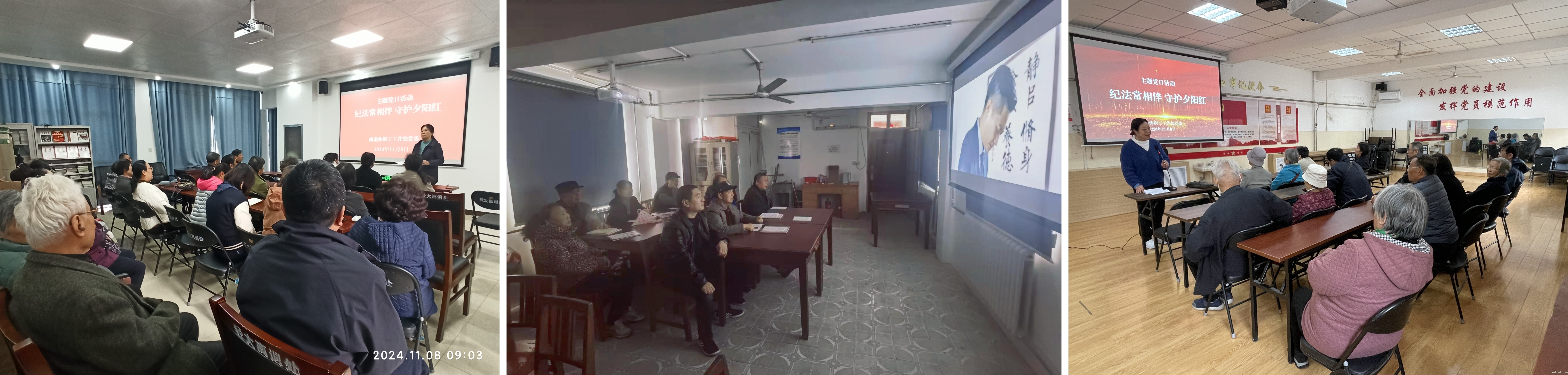 11月8日上午,离退处党委在三校区同时开展“纪法常相伴 守护夕阳红”主题党日活动,向离退休党员干部传达党的纪律建设要求,并组织观看了《退休离职不是贪腐护身符》《廉洁文化微视频(高校篇)》等警示教育片,引导离退休党员干部严守政治纪律和政治规矩。大家纷纷表示,虽已退休,依然要时刻保持头脑清醒,做到明底线、知敬畏、存戒惧,将廉洁齐家作为对亲情最好的守护,管好配偶,教育好子女,为年轻人做榜样。
